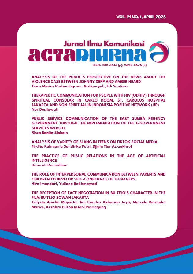 Penggambaran adaptasi multikultural ibu dari suku dan etnis Jawa yang melakukan bentuk-bentuk face negotiation saat bersosialisasi dengan budaya lain digambarkan melalui karakter Bu Tejo di film Bu Tejo Sowan Jakarta. Bu Tejo direpresentasikan sebagai orang tua Jawa yang low context, yakni cenderung tanpa basa-basi, dan kerap berkonflik terbuka. Hal ini berbeda dengan anggapan masyarakat bahwa orang Jawa memiliki pola komunikasi high context, sehingga penting dan menarik untuk melihat pemaknaan face negotiation pada karakter Bu Tejo di kalangan ibu sebagai orang tua Jawa. Penelitian ini menggunakan pendekatan kualitatif dengan paradigma konstruktivisme. Sedangkan, metode penelitian yang digunakan adalah analisis resepsi dengan teori resepsi Stuart Hall sebagai pisau analisis utama. Hasil penelitian ini berakar dari wawancara 4 informan ibu Jawa yang berusia minimal 36 tahun dan memiliki anak dengan usia lebih atau sama dengan 19 tahun. Diperoleh 2 informan di posisi negosiasi dan 2 lainnya di posisi oposisi. Artinya, keseluruhan informan tidak mengakui sepenuhnya orang Jawa berkomunikasi dengan low context. Faktor yang memengaruhi pemaknaan diduga adalah latar belakang budaya Jawa yang dimiliki informan, tingkat pendidikan, serta status ekonomi informan.