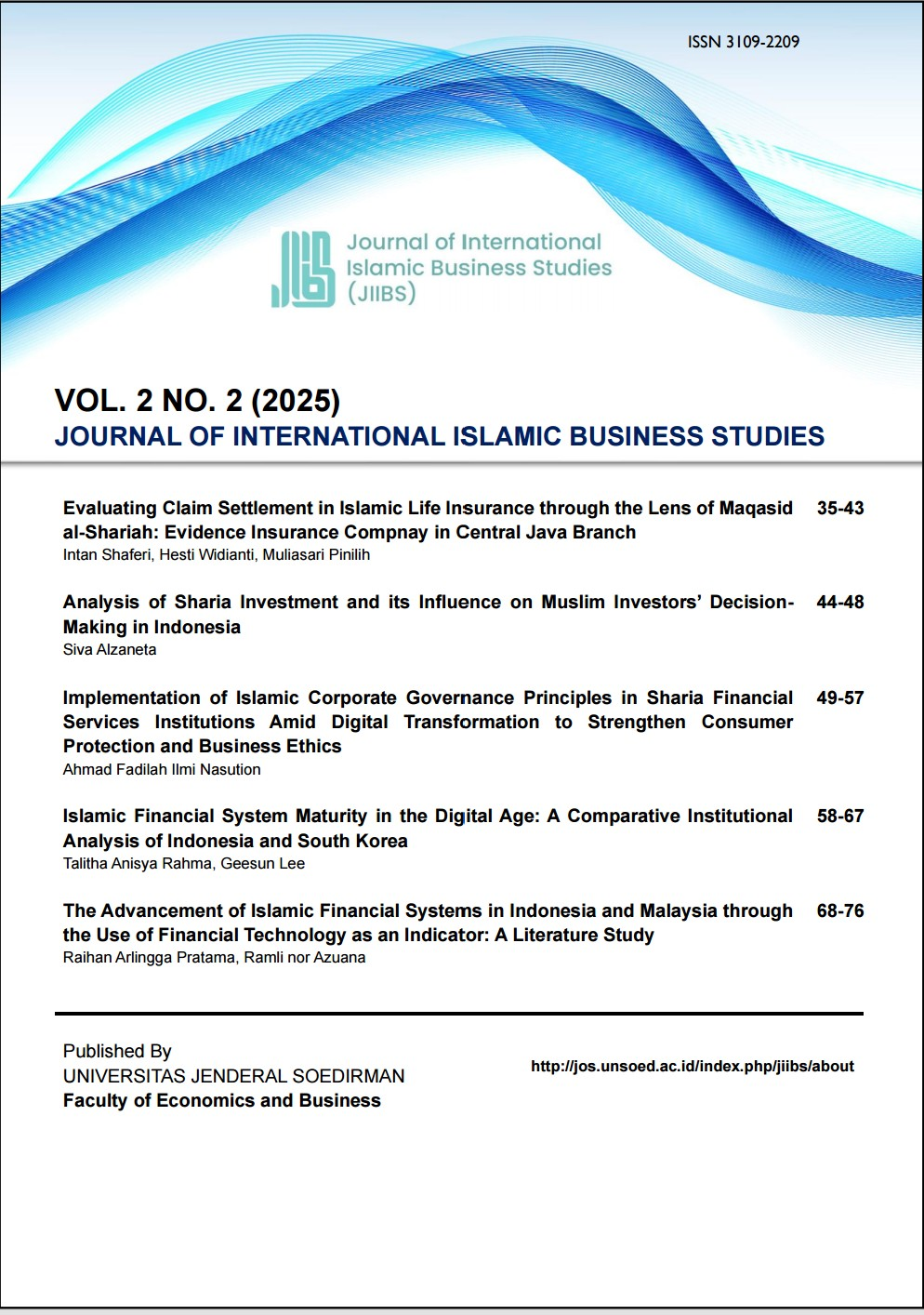 Journal of International Islamic Business Studies (EISSN 3109-2209) is a scholarly journal devoted to publishing high-quality theoretical and empirical articles in all Islamic areas of business, economics, management, banking, and Islamic financials. Promote dialogue and discussion on current issues in the fields of Islamic economics and finance among the international community of scholars. Encourage empirical research on Islamic finance, takaful, zakat, awqaf, and other Islamic institutions, including case studies from Muslim economies. Contemporary global economic issues are viewed from an Islamic perspective. Contributions that facilitate the communications between the real and the financial sectors of the economy are of particular interest.